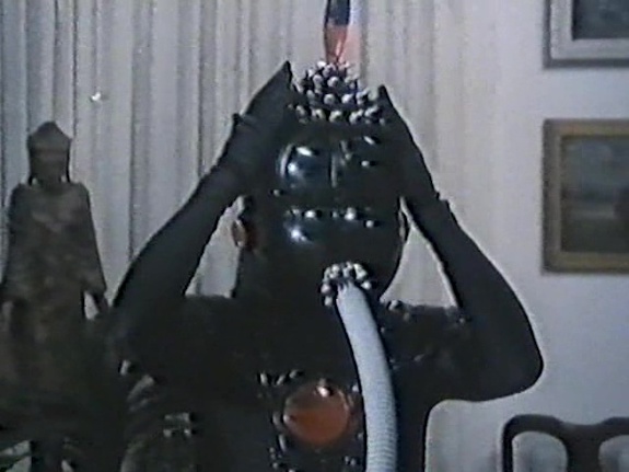 But these Martians aren’t just causing trouble by giving wives unrealistic expectations of what their old tired husbands should be doing in the bedroom ! Somehow they also turned the professor and her maid into lesbians! At least until the end of the movie when it is revealed that the professor knew all along it was really students and not aliens with vacuum hoses on their mouth and buttplugs on their heads that she was involved with! (I don’t think the maid ever figured it out, but then again she’s no astrophysicist, right?)